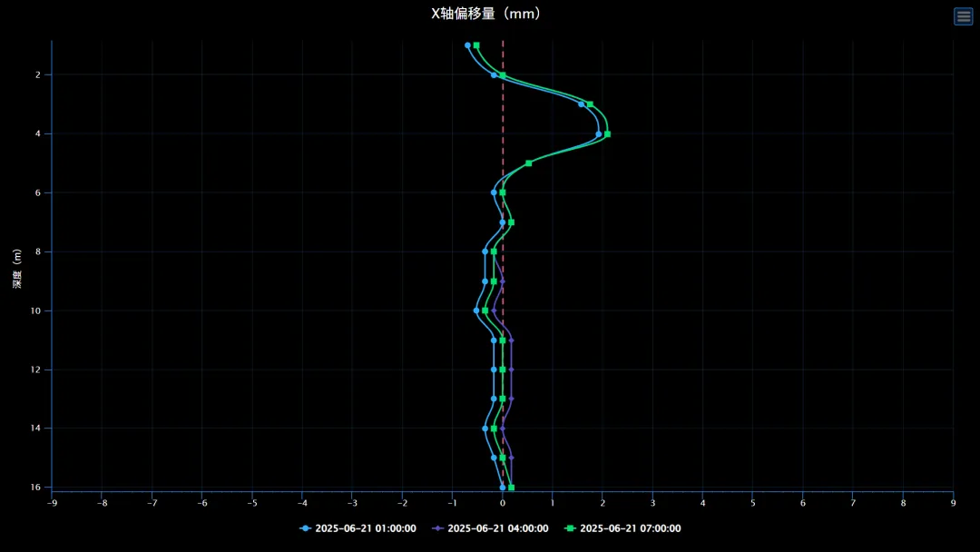1. 项目简介 某省国际机场现有T1、T2两座宽敞的航站楼,以及一条长达3400米、宽45米的跑道,飞行区等级高达4E;尽管某省国际机场在区域枢纽地位上表现卓越,但其现有设施已逐渐无法满足日益增长的航空需求。 为了应对这一挑战并进一步提升综合服务能力,三期扩建工程已吸引总投资约243.9亿元,致力于提升机场的运输能力及其在区域内的辐射功能,立志在2030年实现旅客吞吐量达到4200万人次、货邮吞吐量60万吨的宏伟目标。同时,飞行区等级也将提升至4F,从而确保目前世界上最大的民航机型能够在此安全起降。工程完工后,该机场将演变为一座集航空、高铁、地铁于一体的现代化综合交通枢纽,助力该省深度参与国家战略,推动各类要素的高效集聚。 2. 监测目的 本此监测的监测主体为该机场三期扩建工程-机场工程道桥工程5号下穿通道基坑,目的是通过系统化的数据采集与分析,动态掌握基坑工程,实时掌握其周边机场环境的安全状态,为施工决策提供科学依据,最终实现安全、经济、高效的施工目标。其核心价值在于将不可见的风险转化为可管理的数据。 3. 点位布设 深层水平位移布设 本方案按照规范要求沿着基坑周边进行布设,本项目总共布设53个测斜孔,其中自动化监测孔25个,以自动化+人工结合的方式进行监测。 4. 测点统计 5. 现场图片 6. 岩创可视化平台数据展示 本项目通过岩创可视化云平台观查数据,根据设置报警值,数据变化达到预警值时通过电话、短信等的方式及时通知,提供有效预警,提高了基坑管理的效率和安全性,构建一个全面的安全监测体系;我们将持续创新,以提供更有力的技术保障。